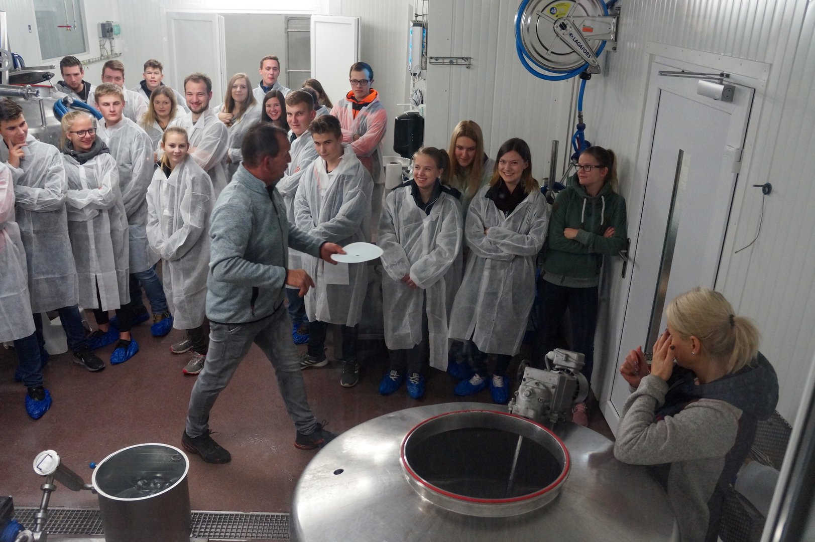 Am Freitag, dem 19.10.2018, fand unsere jährliche Abendagrarexkursion statt. Diesmal hatten wir die Möglichkeit die Hofmolkerei der Familie Grasser zu besichtigen. Nach einer sehr interessanten Führung durch die hofeigene Molkerei, wo wir viel über die Produktion von Topfen, Butter sowie Joghurt erfahren haben, bekamen wir einen Einblick in die Stallungen des Zuchtbetriebs. Zum Abschluss bereitete Familie Grasser für uns eine Jause mit eigenen Produkten zu. Wir bedanken uns recht herzlich für die interessante Führung und die gute Verpflegung.