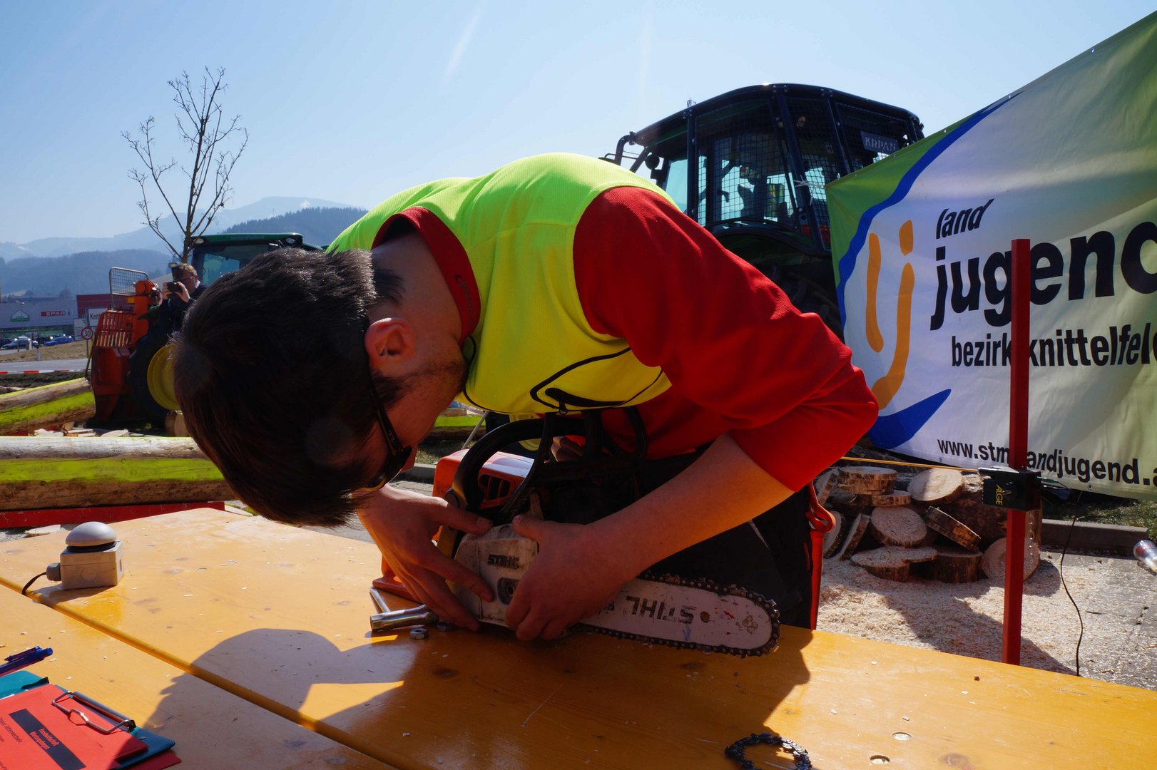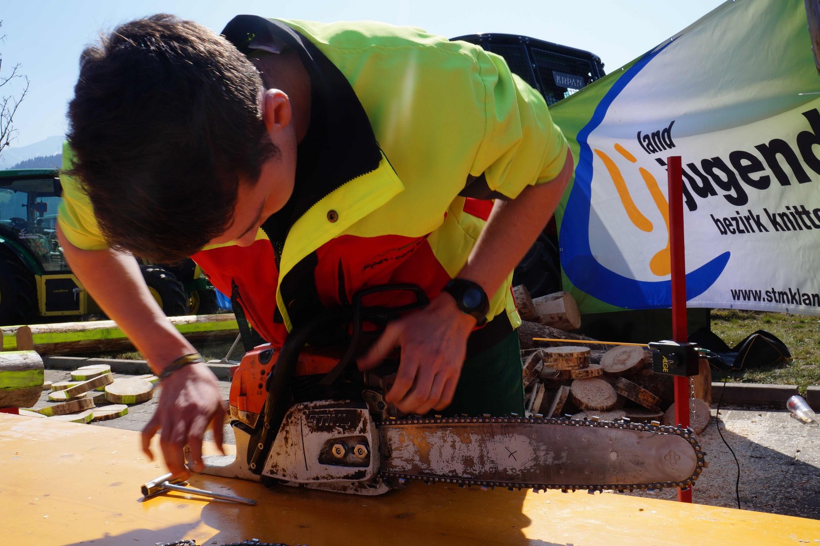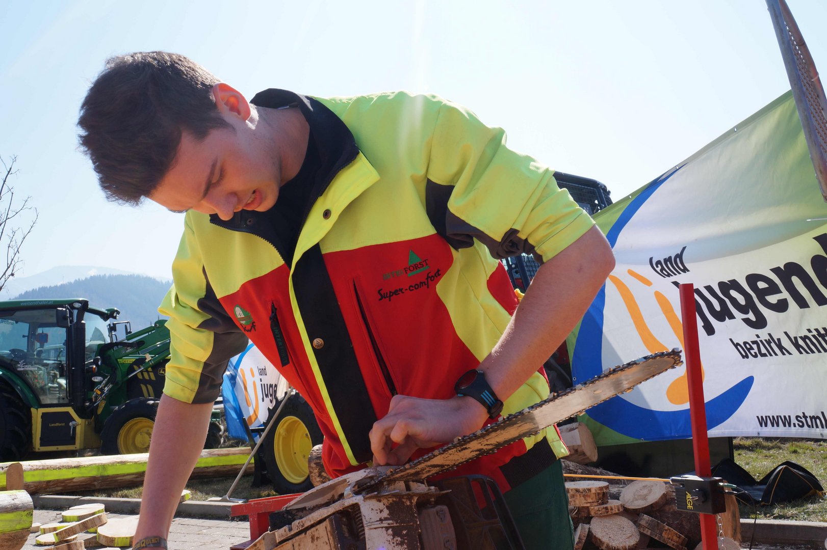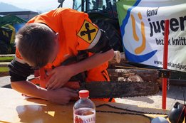 Beim Landforstkirtag in Knittelfeld konnte der Bewerb der Superlative mit 30 TeilnehmerInnen aus anderen Bezirken durchgeführt werden. Besonders erfreulich war auch die Zahl der weiblichen Teilnehmerinnen. 14 Mädchen zeigten beim doch sehr männlich dominierten Bewerb tolle Leistungen. Genauigkeit, Präzision und Schnelligkeit musste bei den Stationen Präzisionsschnitt, Kombinationsschnitt, Fallkerb- und Fällschnitt, sowie beim Kettenwechseln bewiesen werden. Durch die Unterstützung der Bezirkskammer für Land- und Forstwirtschaft und der Landforst Knittelfeld konnte den TeilnehmerInnen ein fairer und fachlich hochwertiger Wettbewerb geboten werden. Die Klasse der Landjugend Knittelfeld konnte Karl Freytag (Ortsgruppe Glein-Rachau) für sich entscheiden. Er bewies vor seinen Kollegen, Martin Steinkellner (Ortsgruppe Kleinlobming) und Bernhard Gruber (Ortsgruppe Kleinlobming), das meiste Geschick im Umgang mit der Motorsäge. Die Landjugendklasse Judenburg entschied Christoph Kubli (Ortsgruppe Unzmarkt) vor Michael Grasser (Ortsgruppe Rattenberg) und seinem Bruder Martin Kubli (Ortsgruppe Unzmarkt) für sich. Christoph Kubli hatte besonderen Grund zu feiern, erzielte er doch zusätzlich auch noch die Tagesbestleistung. In der Gästeklasse konnten sich die Besucher aus Leoben, Kapfenberg und Murau auf das Treppchen stellen. Michael Hafelner siegte hier vor Johannes Weißenbichler und Rafael Rieberer. Den Siegern des jährlich stattfindenden Bewerbs konnten wertvolle Preise der Landforst Knittelfeld und Murauer Bier überreicht werden.