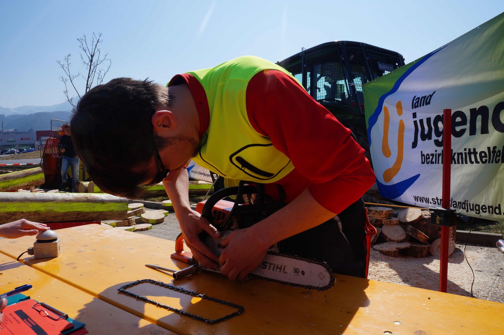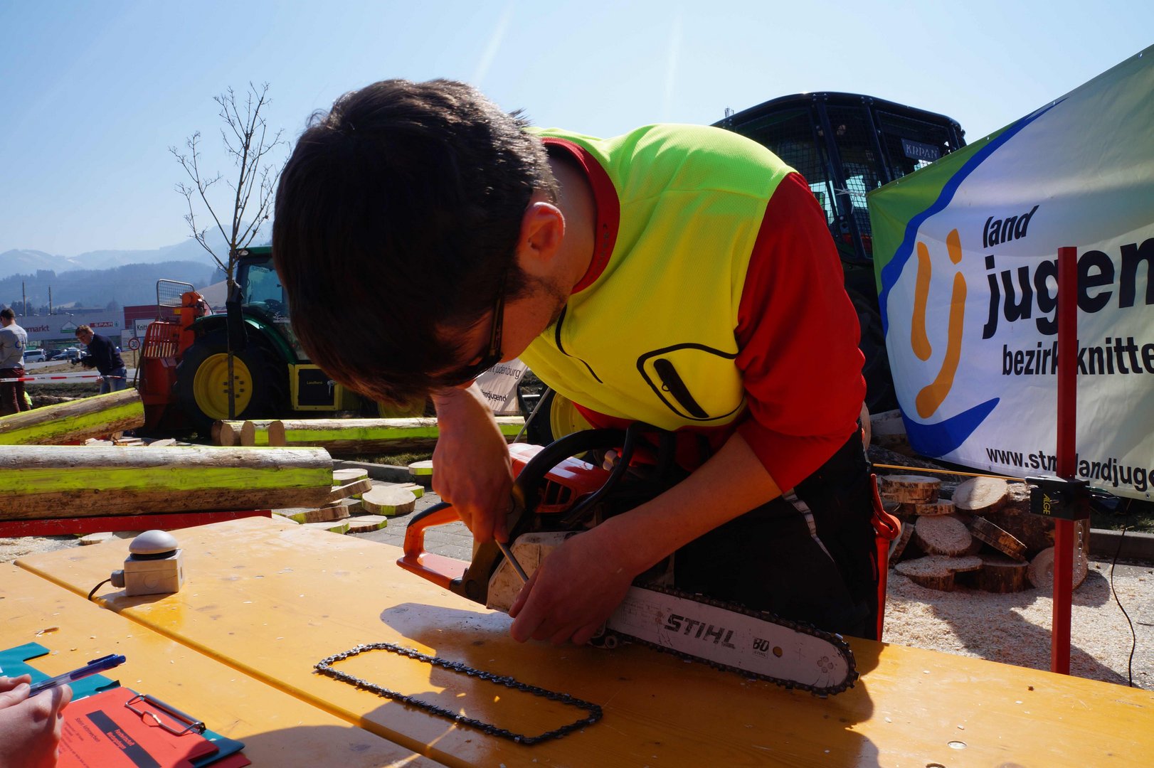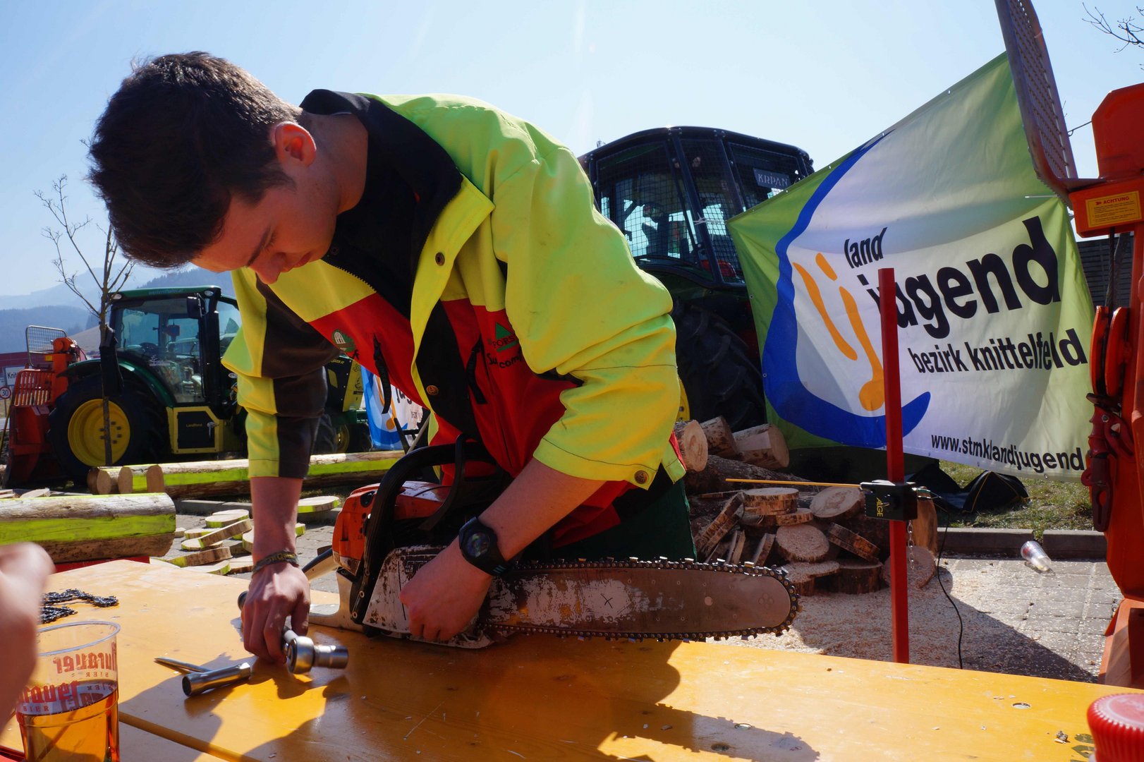 Beim Landforstkirtag in Knittelfeld konnte der Bewerb der Superlative mit 30 TeilnehmerInnen aus anderen Bezirken durchgeführt werden. Besonders erfreulich war auch die Zahl der weiblichen Teilnehmerinnen. 14 Mädchen zeigten beim doch sehr männlich dominierten Bewerb tolle Leistungen. Genauigkeit, Präzision und Schnelligkeit musste bei den Stationen Präzisionsschnitt, Kombinationsschnitt, Fallkerb- und Fällschnitt, sowie beim Kettenwechseln bewiesen werden. Durch die Unterstützung der Bezirkskammer für Land- und Forstwirtschaft und der Landforst Knittelfeld konnte den TeilnehmerInnen ein fairer und fachlich hochwertiger Wettbewerb geboten werden. Die Klasse der Landjugend Knittelfeld konnte Karl Freytag (Ortsgruppe Glein-Rachau) für sich entscheiden. Er bewies vor seinen Kollegen, Martin Steinkellner (Ortsgruppe Kleinlobming) und Bernhard Gruber (Ortsgruppe Kleinlobming), das meiste Geschick im Umgang mit der Motorsäge. Die Landjugendklasse Judenburg entschied Christoph Kubli (Ortsgruppe Unzmarkt) vor Michael Grasser (Ortsgruppe Rattenberg) und seinem Bruder Martin Kubli (Ortsgruppe Unzmarkt) für sich. Christoph Kubli hatte besonderen Grund zu feiern, erzielte er doch zusätzlich auch noch die Tagesbestleistung. In der Gästeklasse konnten sich die Besucher aus Leoben, Kapfenberg und Murau auf das Treppchen stellen. Michael Hafelner siegte hier vor Johannes Weißenbichler und Rafael Rieberer. Den Siegern des jährlich stattfindenden Bewerbs konnten wertvolle Preise der Landforst Knittelfeld und Murauer Bier überreicht werden.